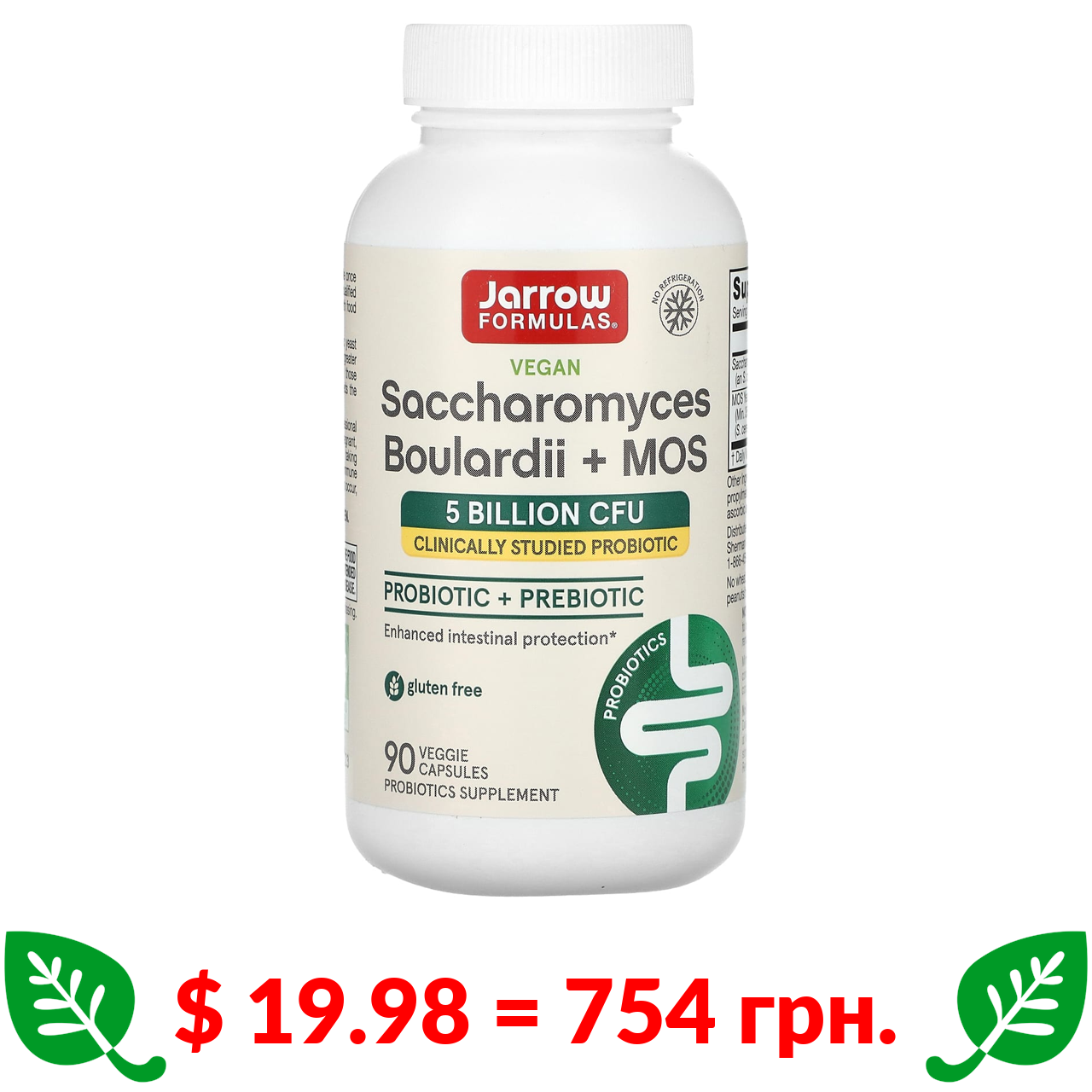 $ 19.98 = 754 грн. ????️ у кошику ????️ Jarrow Formulas, Vegan Saccharomyces Boulardii + MOS, 5 Billion CFU, 90 Veggie Capsules
