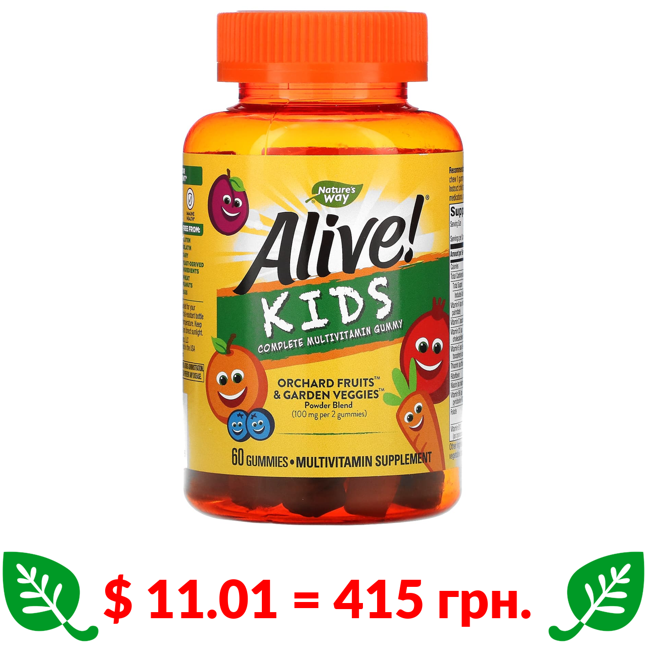 $ 11.01 = 415 грн. Nature’s Way, Alive! Kids, Complete Multivitamin, Cherry, Orange & Grape , 60 Gummies