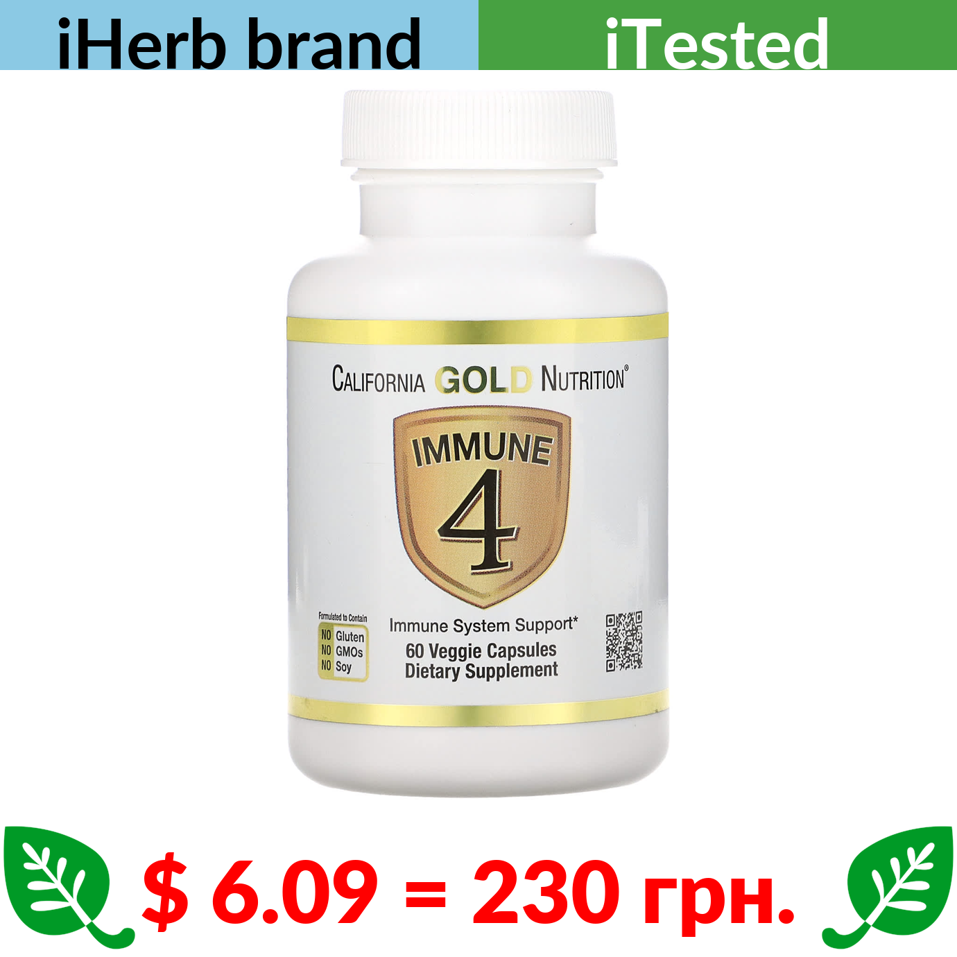 $ 6.09 = 230 грн. ????️ у кошику ????️ California Gold Nutrition, Immune 4, Immune System Support, 60 Veggie Capsules