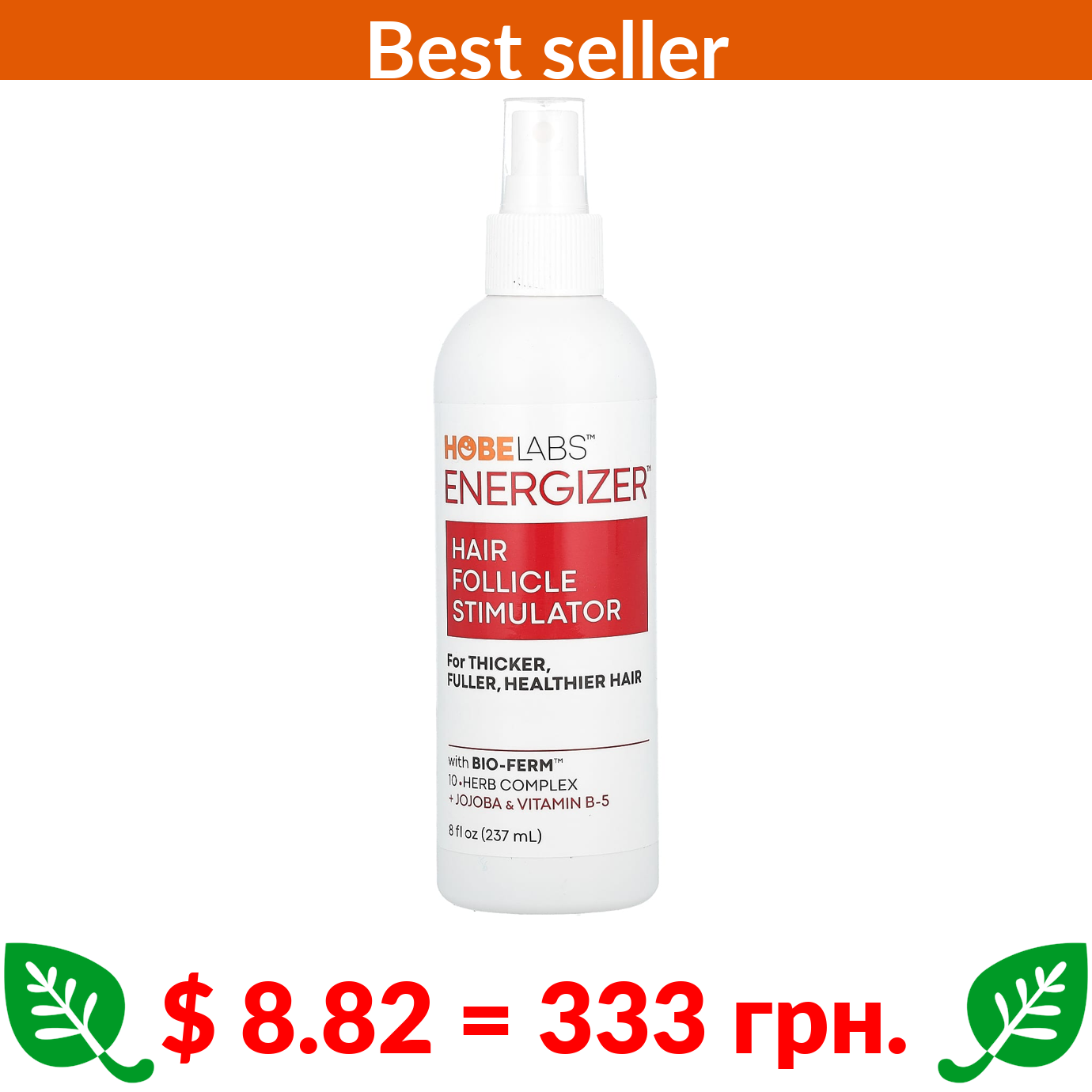 $ 8.82 = 333 грн. ????️ у кошику ????️ Hobe Labs, Energizer, Hair Follicle Stimulator, 8 fl oz (237 ml)