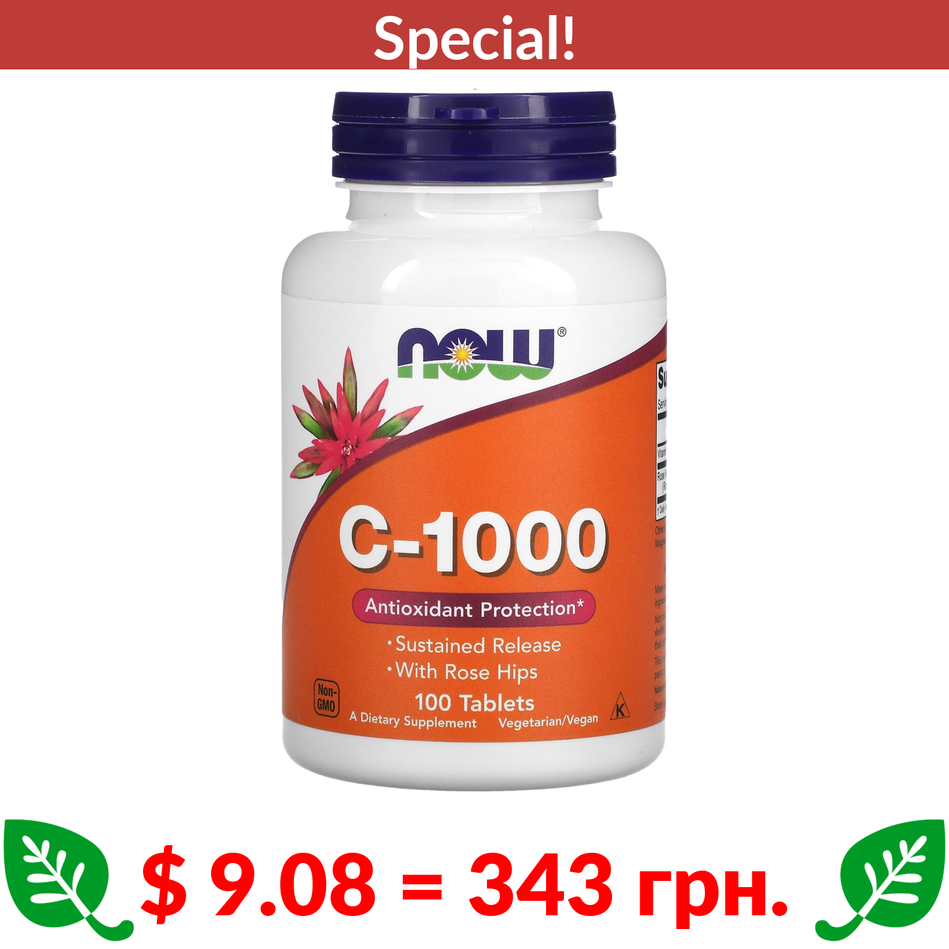 $ 9.08 = 343 грн. ???? cуперакція! ???? NOW Foods, C-1000, 100 Tablets