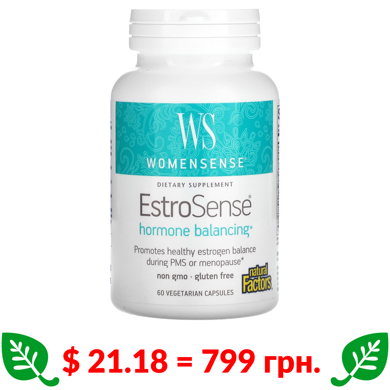 $ 21.18 = 799 грн. Natural Factors, WomenSense, EstroSense, Hormone Balancing, 60 Vegetarian Capsules