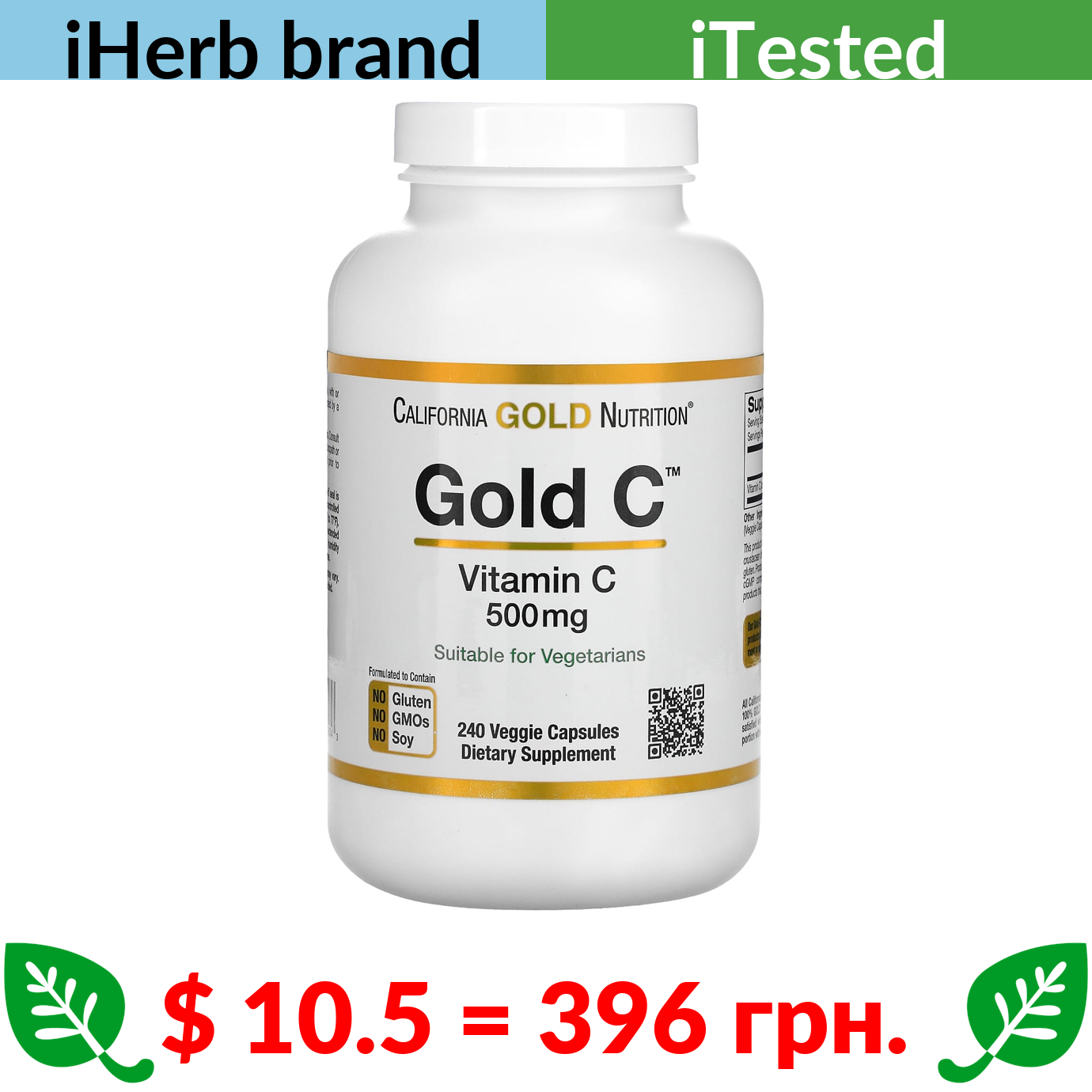 $ 10.5 = 396 грн. ????️ у кошику ????️ California Gold Nutrition, Gold C, USP Grade Vitamin C, 500 mg, 240 Veggie Capsules