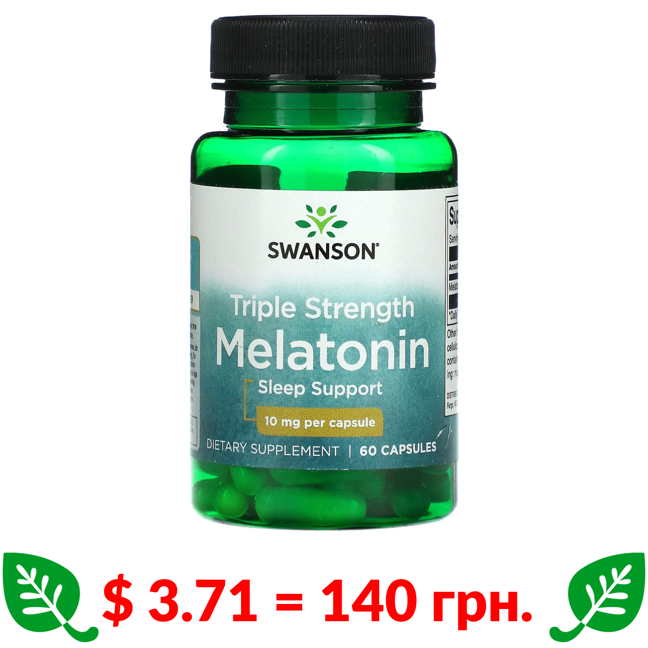 $ 3.71 = 140 грн. Swanson, Triple Strength Melatonin, 10 mg, 60 Capsules