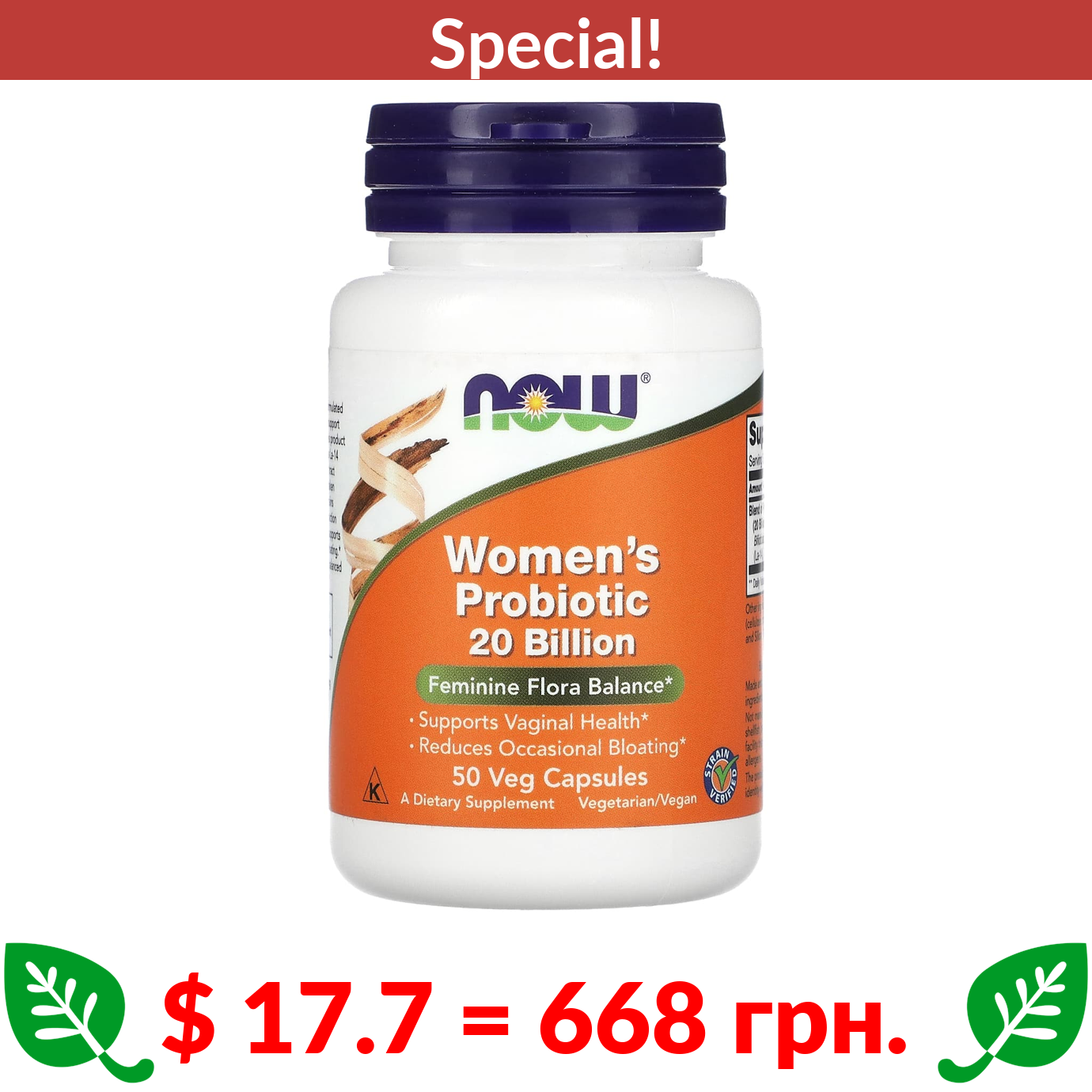 $ 17.7 = 668 грн. ???? cуперакція! ???? NOW Foods, Woman’s Probiotic , 20 Billion, 50 Veg Capsules