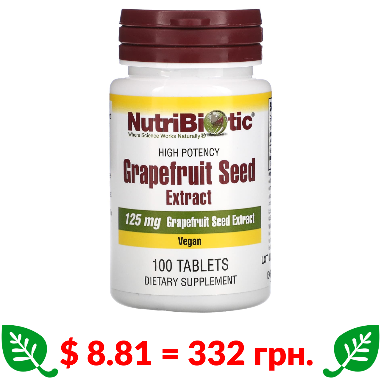 $ 8.81 = 332 грн. ????️ у кошику ????️ NutriBiotic, Grapefruit Seed Extract, 125 mg, 100 Tablets