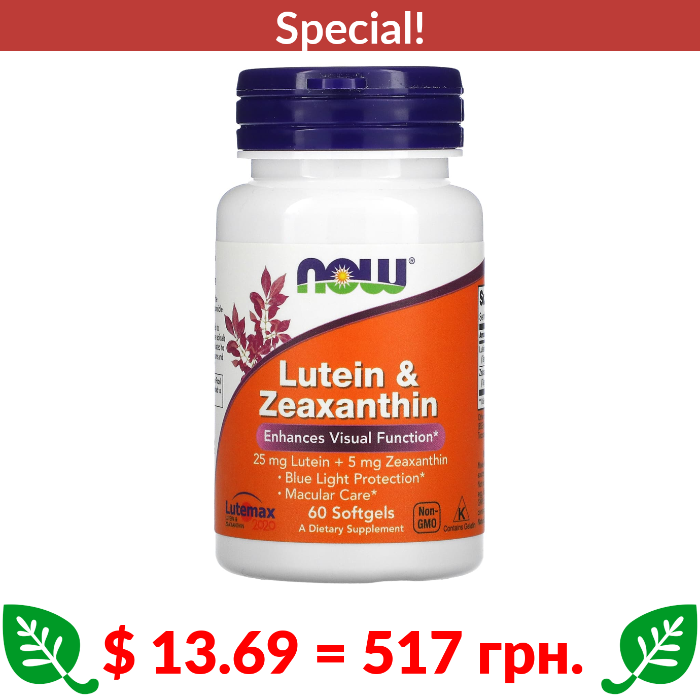 $ 13.69 = 517 грн. ???? cуперакція! ???? NOW Foods, Lutein & Zeaxanthin, 60 Softgels