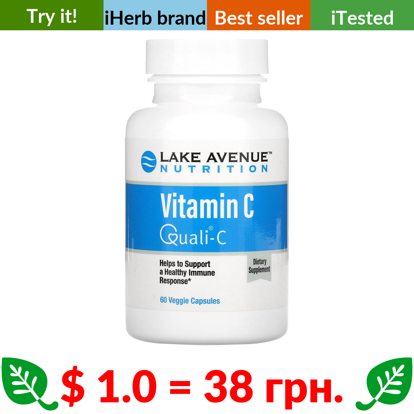 $ 1.0 = 38 грн. ???? варто спробувати ???? Lake Avenue Nutrition, Vitamin C, Quali-C, 1,000 mg, 60 Veggie Capsules