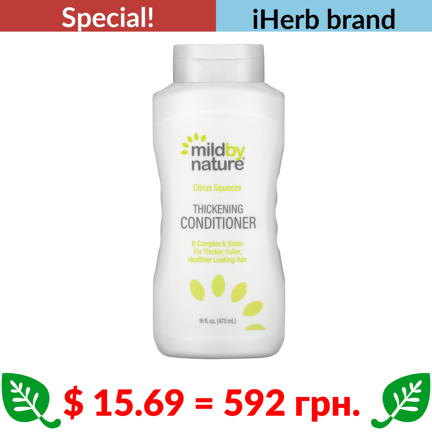 $ 15.69 = 592 грн. ???? cуперакція! ???? Mild By Nature, Thickening Conditioner, B-Complex & Biotin, Citrus Squeeze, 16 fl oz (473 ml)
