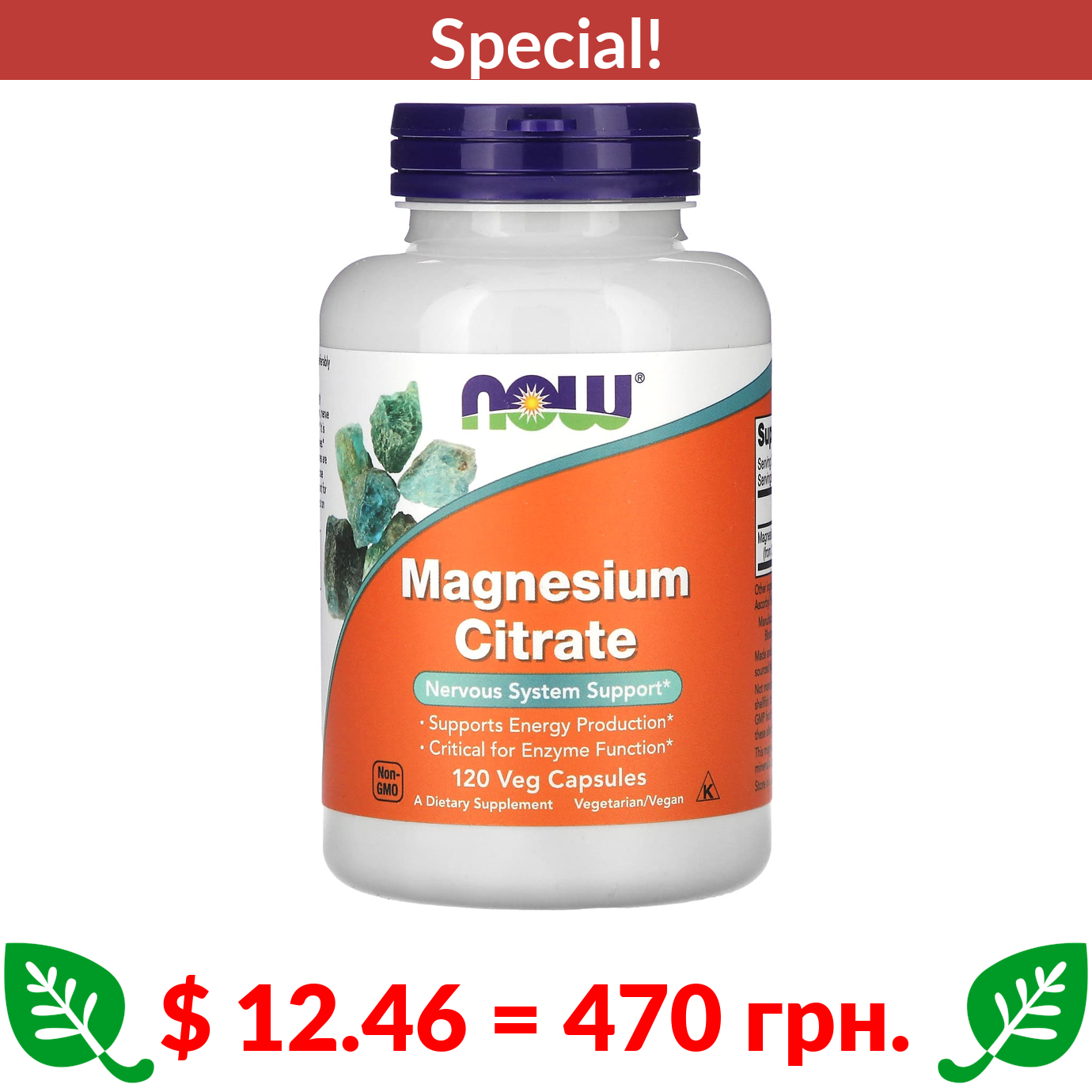 $ 12.46 = 470 грн. ???? cуперакція! ???? NOW Foods, Magnesium Citrate, 120 Veg Capsules