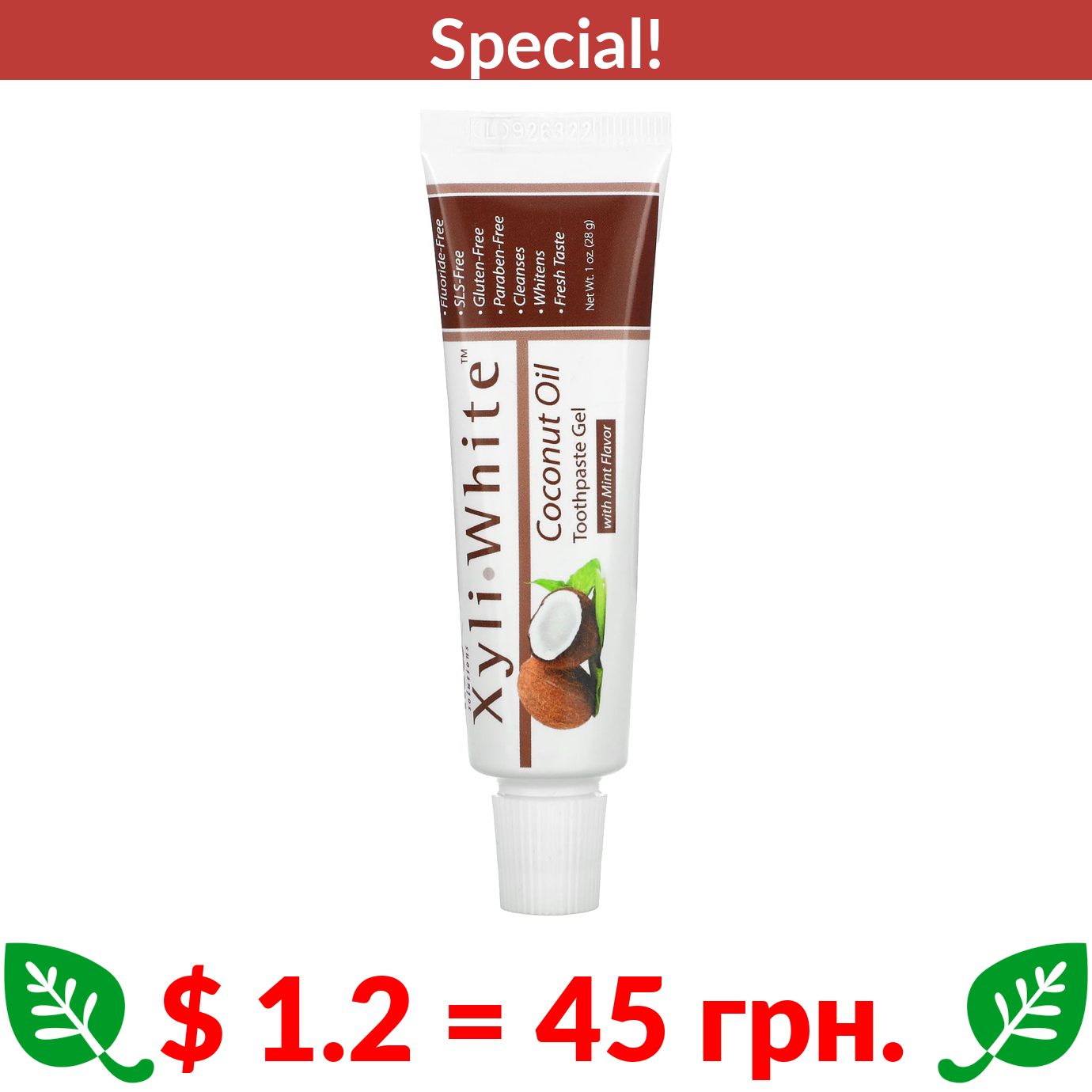$ 1.2 = 45 грн. ???? cуперакція! ???? NOW Foods, Solutions, XyliWhite, Toothpaste Gel, Coconut Oil, Mint Flavor, 1 oz (28 g)